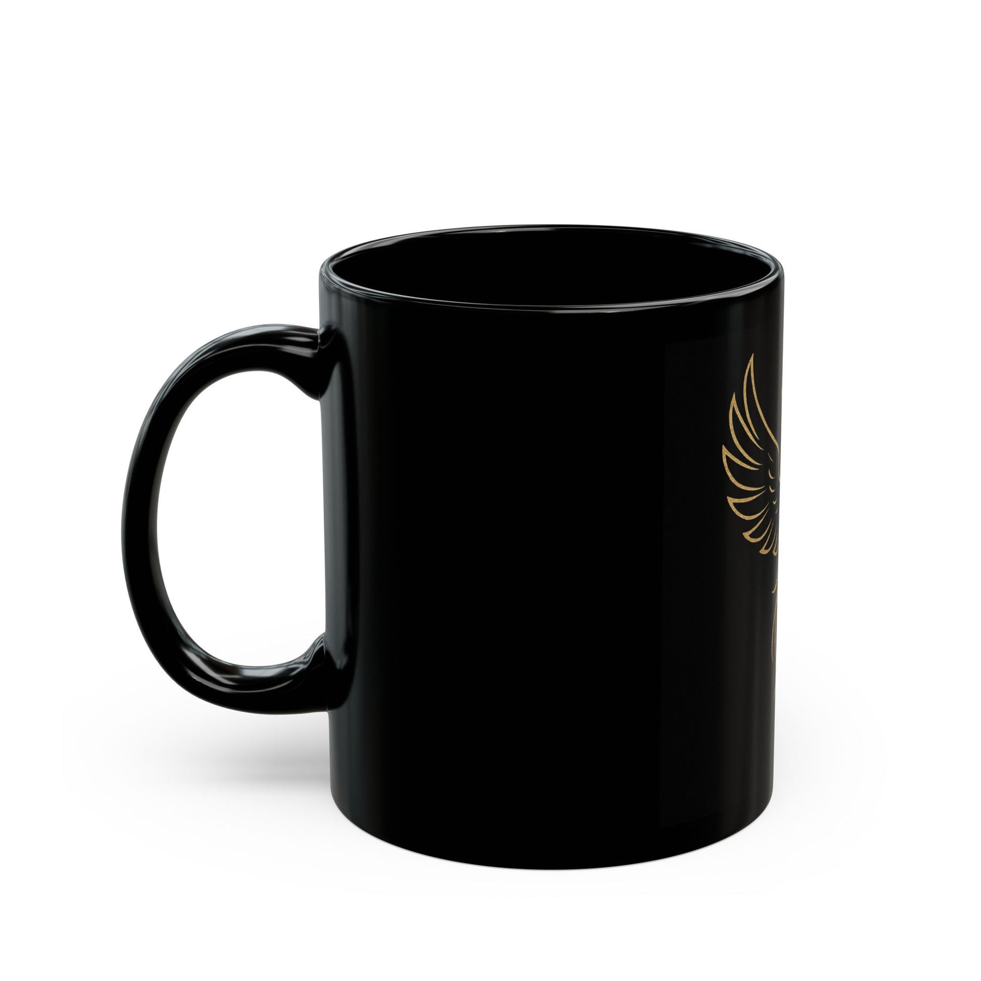 Phoenix Outline Black Coffee Mug — Gold Mythical Bird Design (11oz & 15oz)